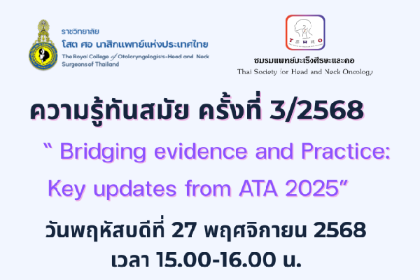 อ่านรายละเอียดเพิ่มเติมงานวิชาการความรู้ทันสมัย ครั้งที่ 3/2565 "ENT Knowledge Update"