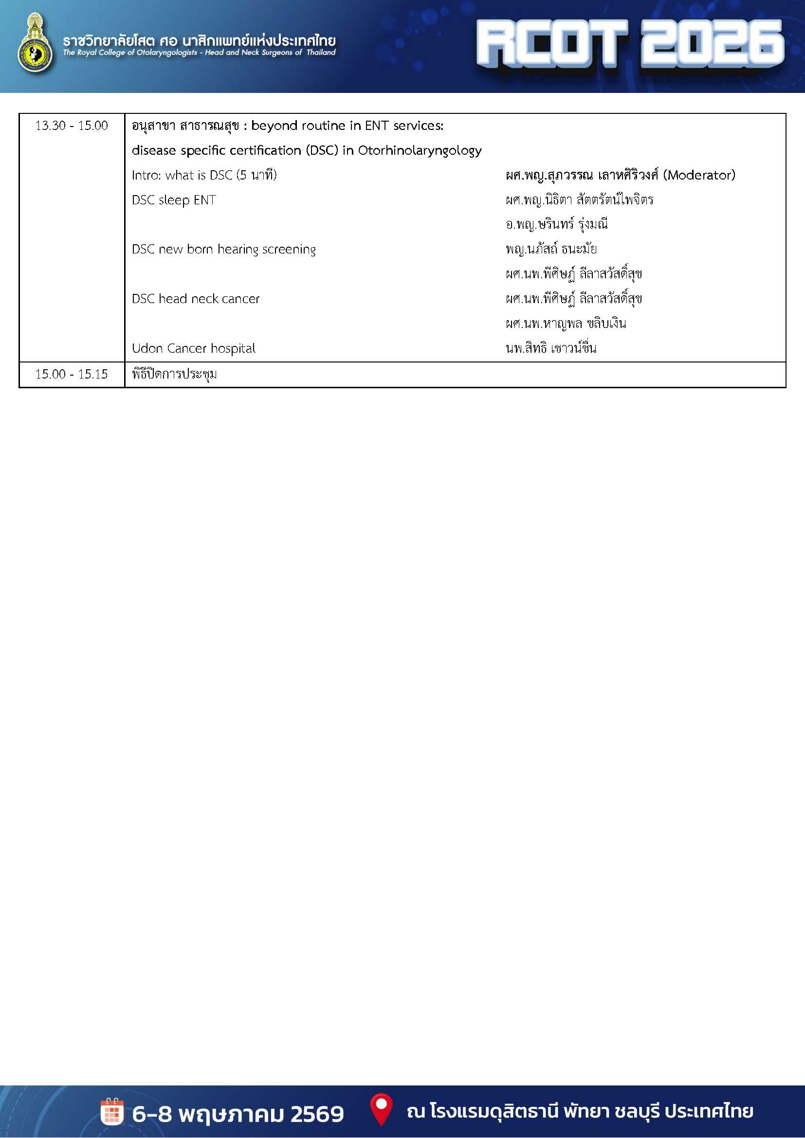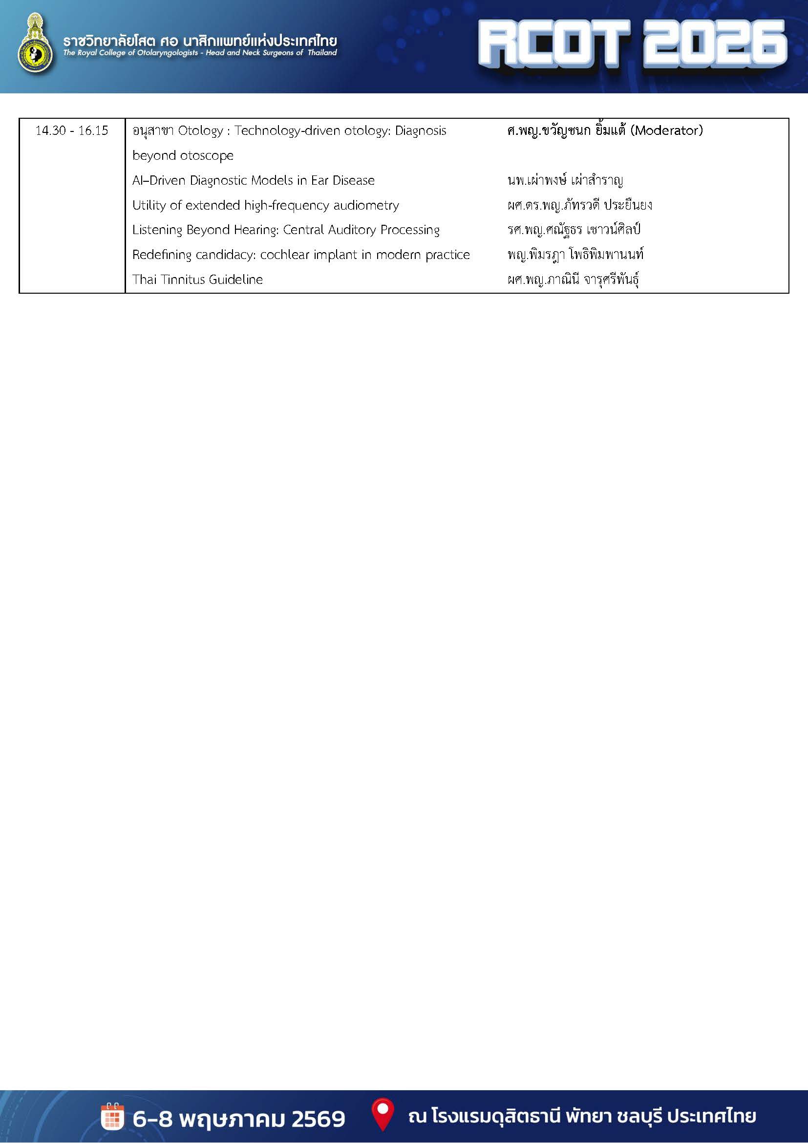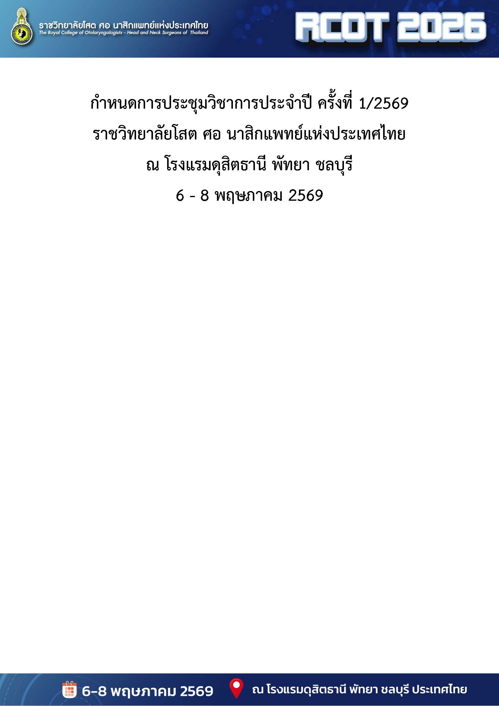 งานประชุมวิชาการประจำปี ราชวิทยาลัยโสต ศอ นาสิกแพทย์แห่งประเทศไทย ครั้งที่ 1/2569 RCOT 2026 "Beyond the Routine"