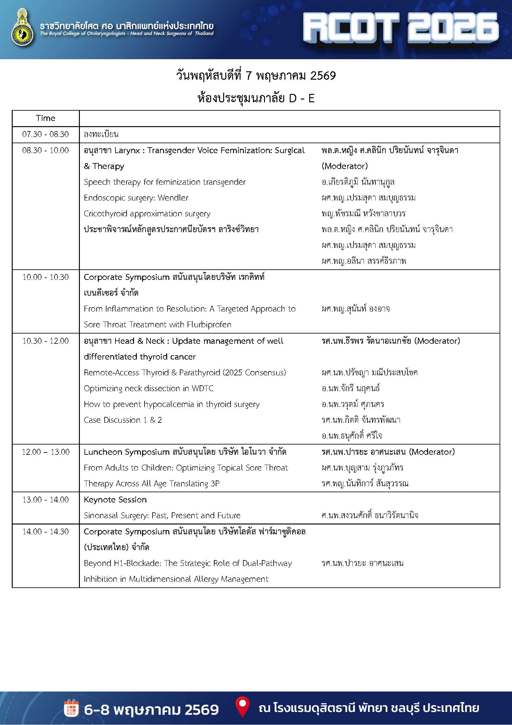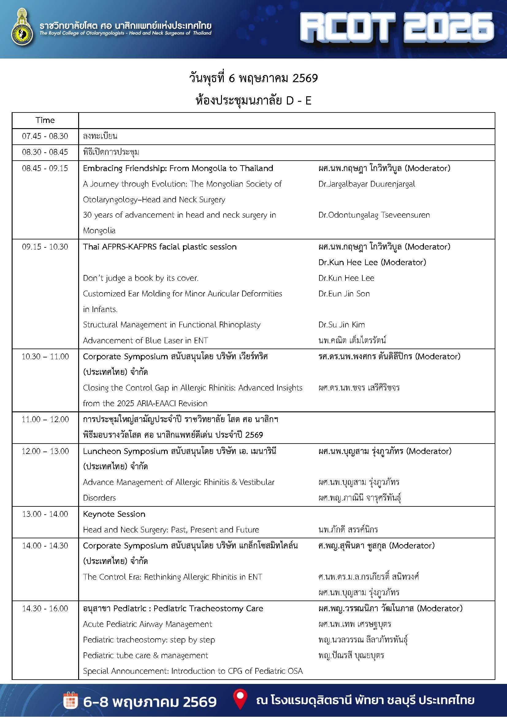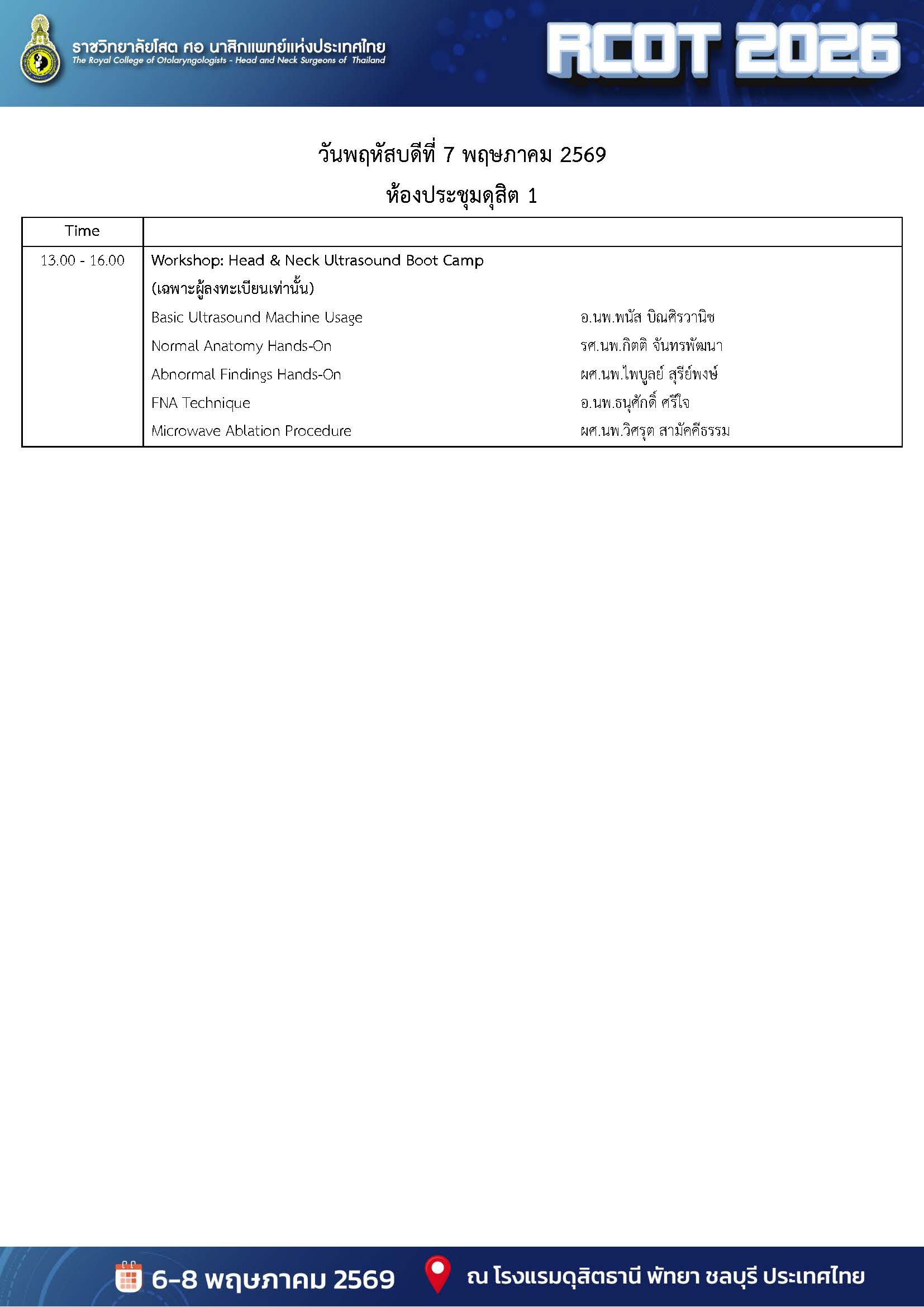 งานประชุมวิชาการประจำปี ราชวิทยาลัยโสต ศอ นาสิกแพทย์แห่งประเทศไทย ครั้งที่ 1/2569 RCOT 2026 "Beyond the Routine"