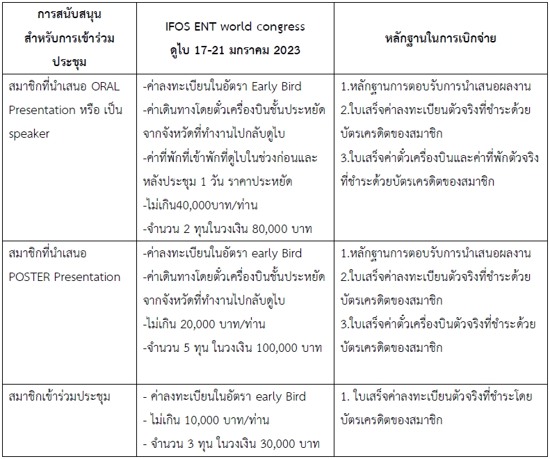 หลักเกณฑ์การขอรับการสนับสนุนจากราชวิทยาลัยโสต ศอ นาสิกแห่งประเทศไทย