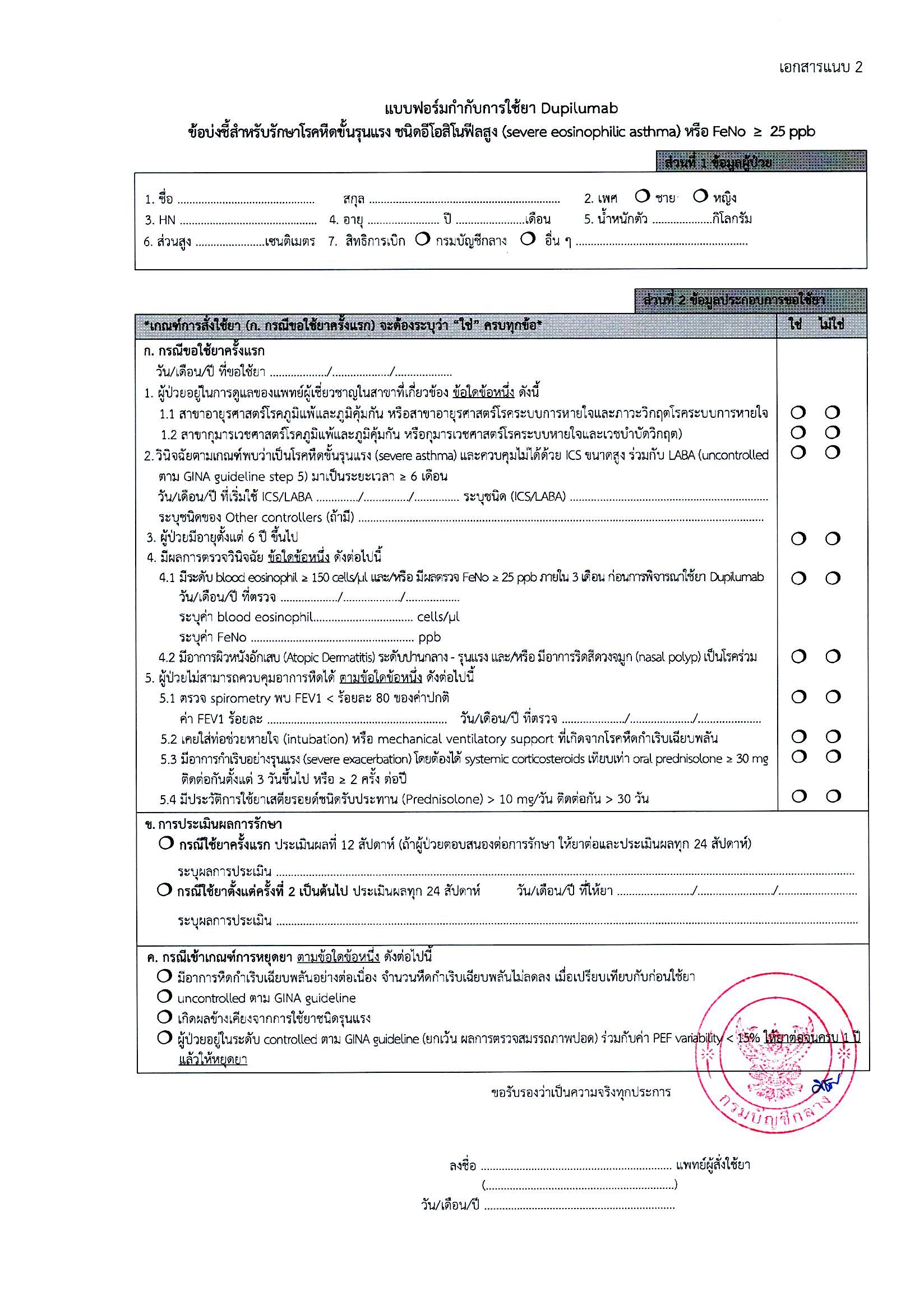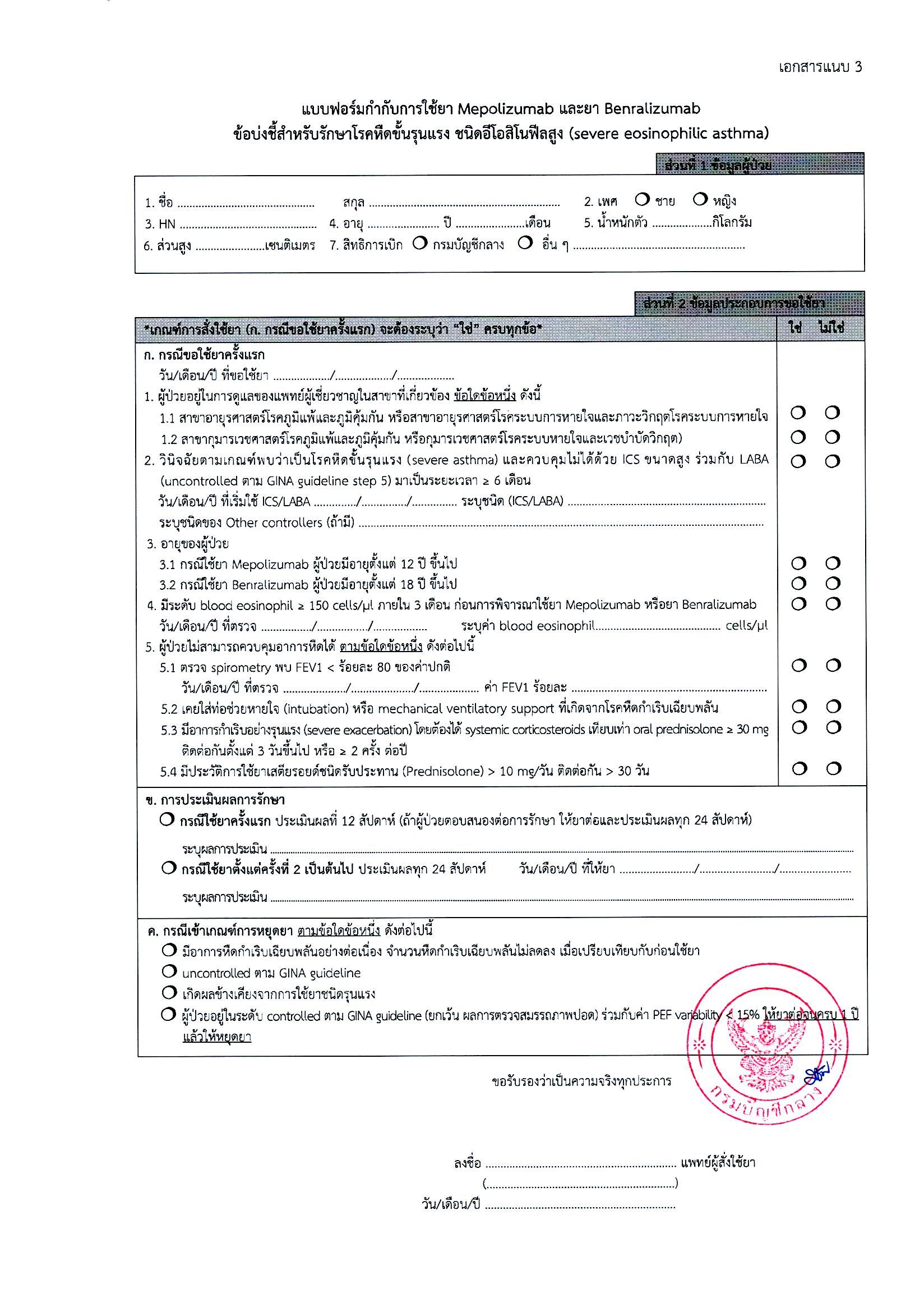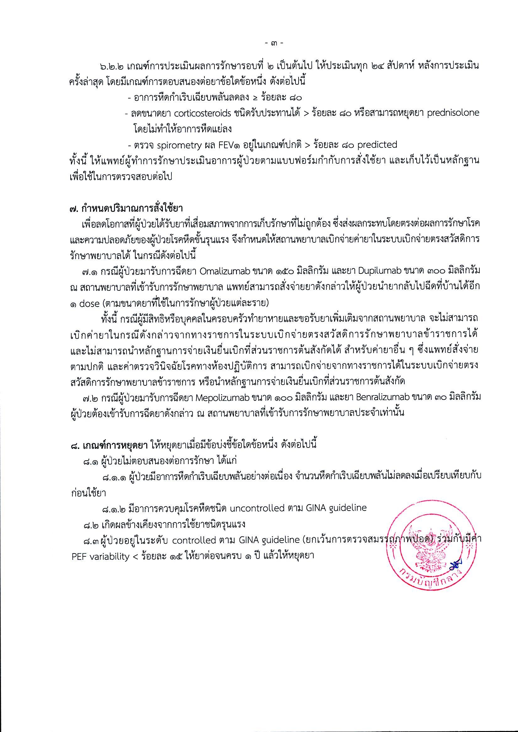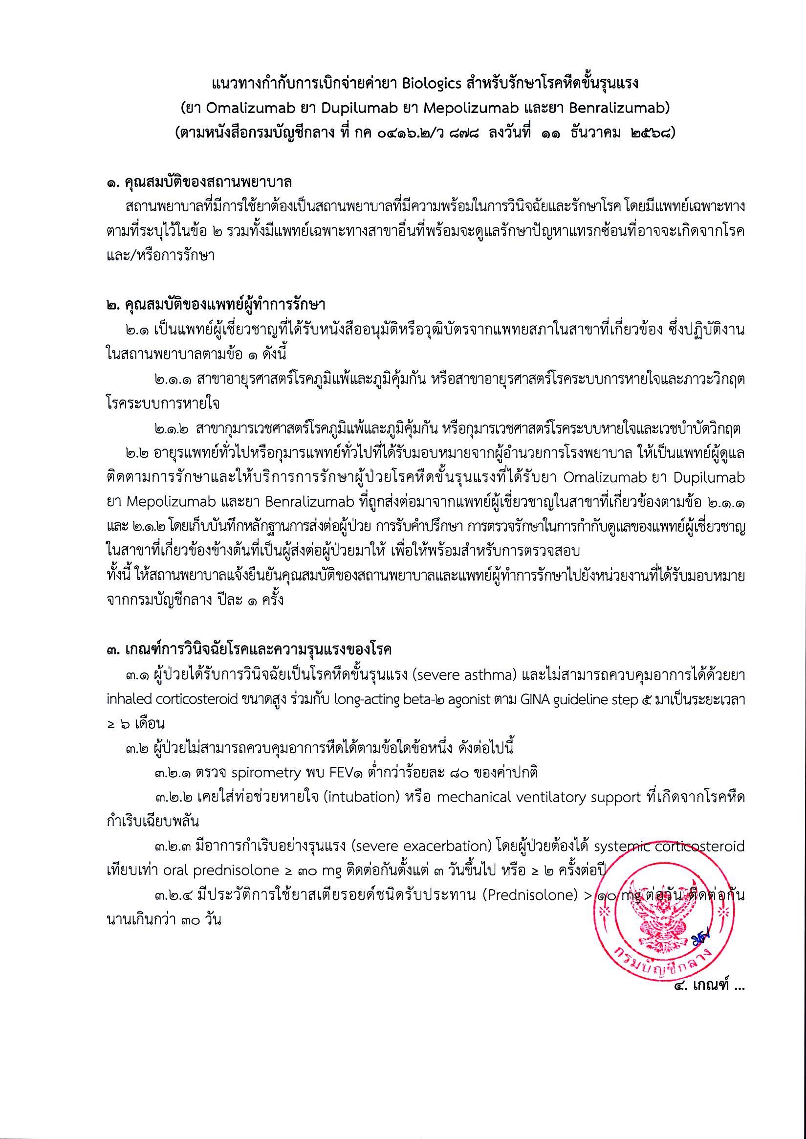 หลักเกณฑ์การเบิกจ่ายค่ารักษาพยาบาลสำหรับผู้ป่วยโรคหืดขั้นรุนแรง