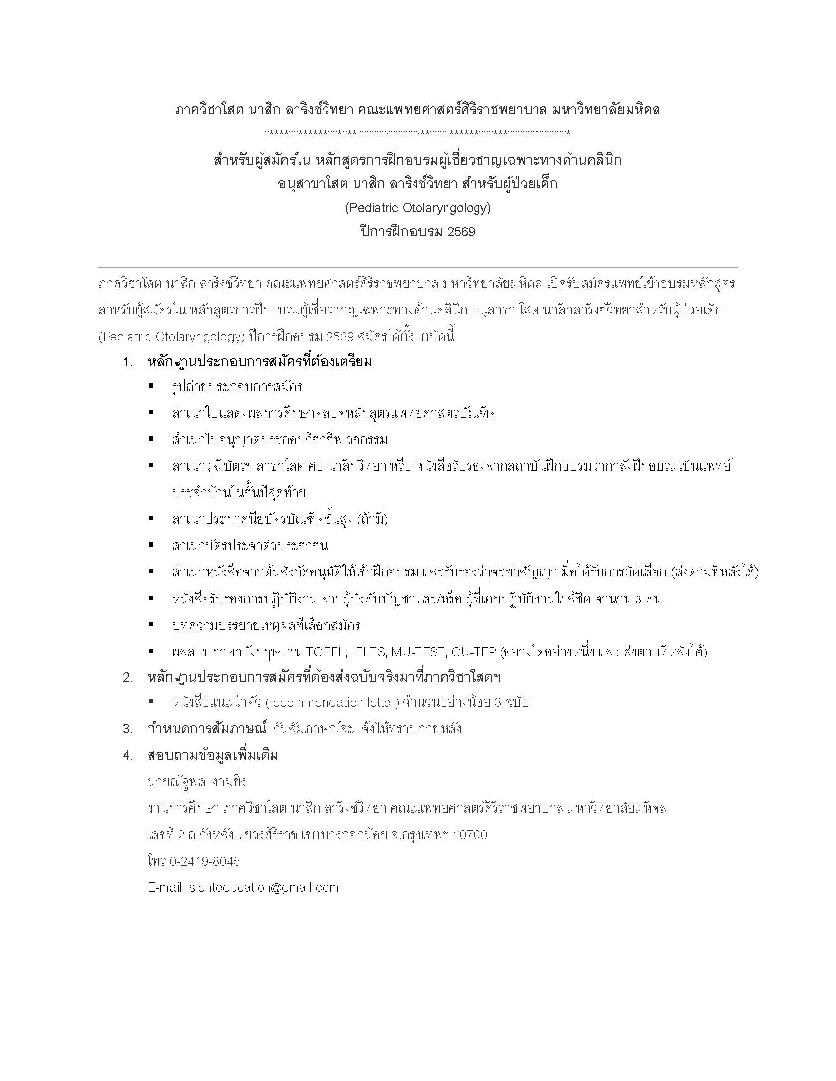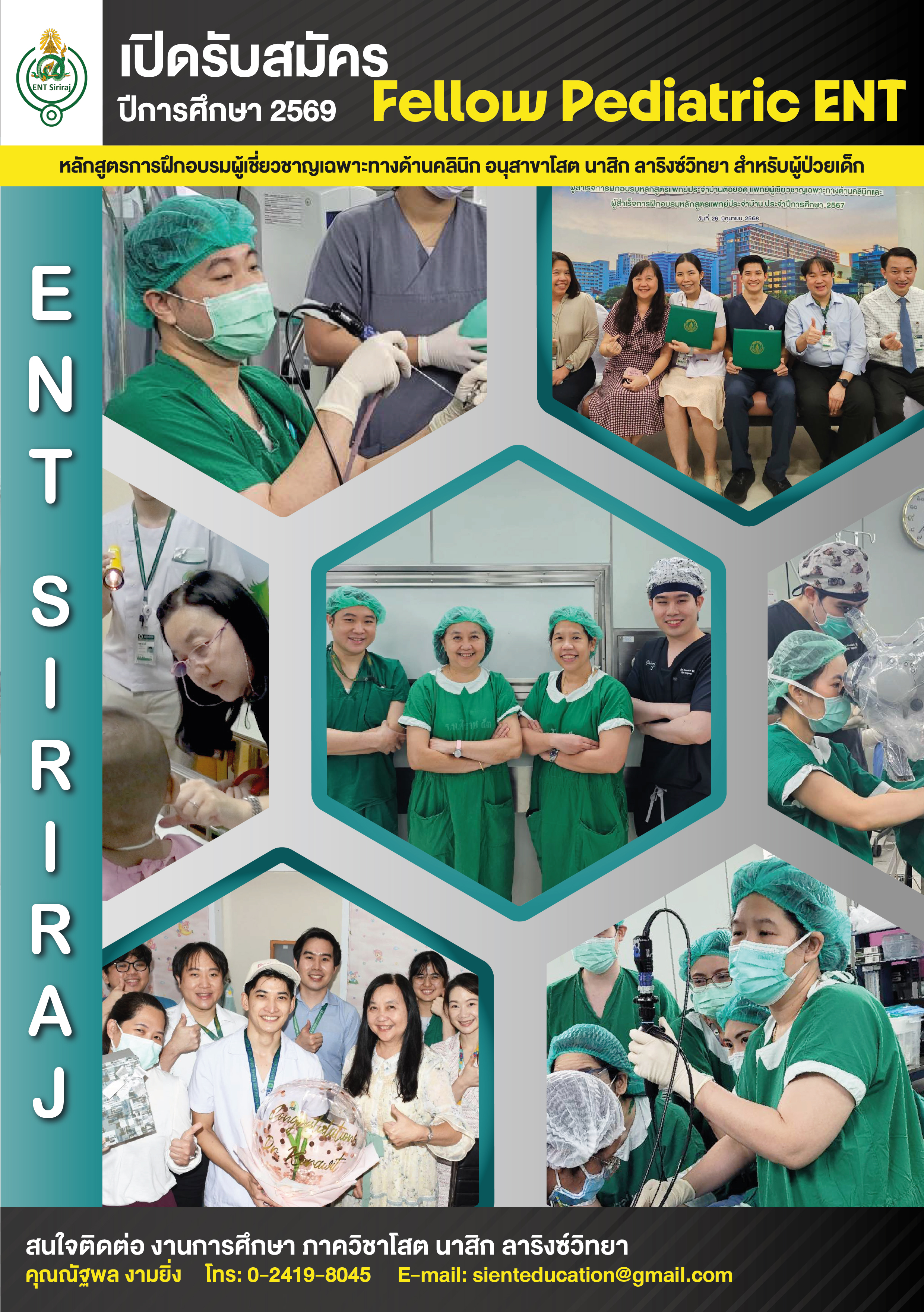 สมัคร Fellow Pediatric ENT ปีการฝึกอบรม 2569