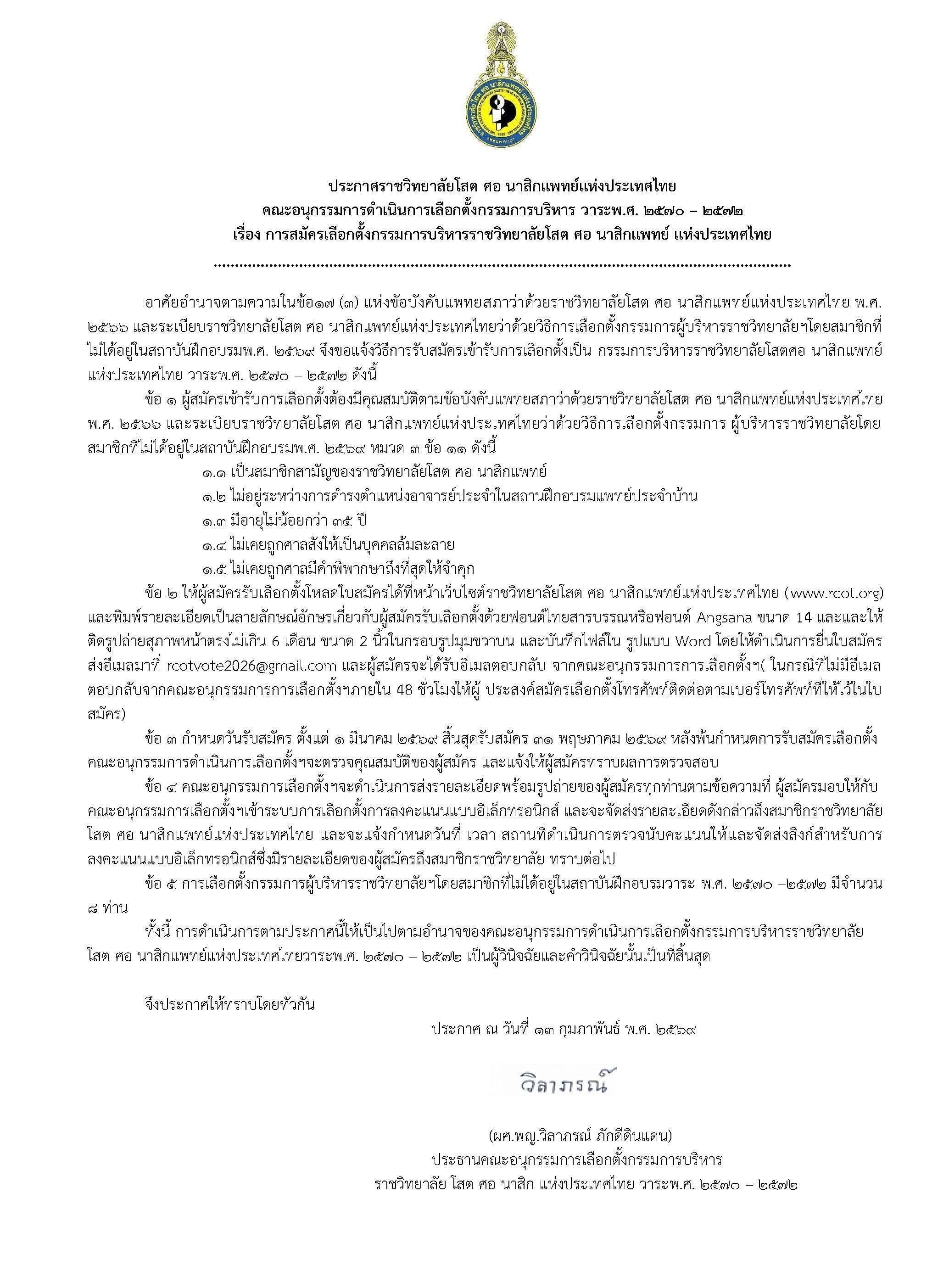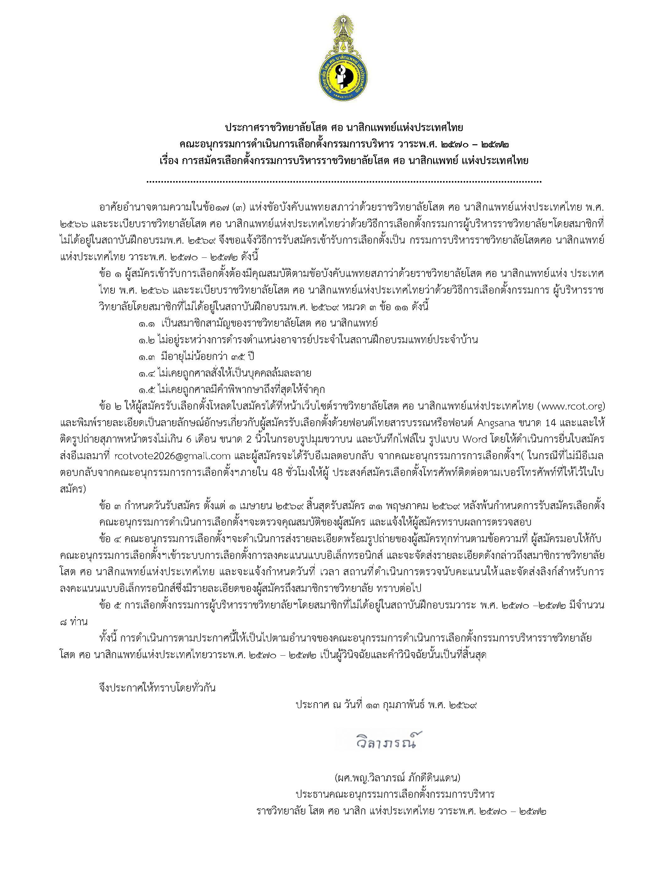 ประกาศราชวิทยาลัยโสต ศอ นาสิกแพทย์แห่งประเทศไทย เรื่อง การสมัครเลือกตั้งกรรมการบริหารราชวิทยาลัยโสต ศอ นาสิกแพทย์ แห่งประเทศไทย